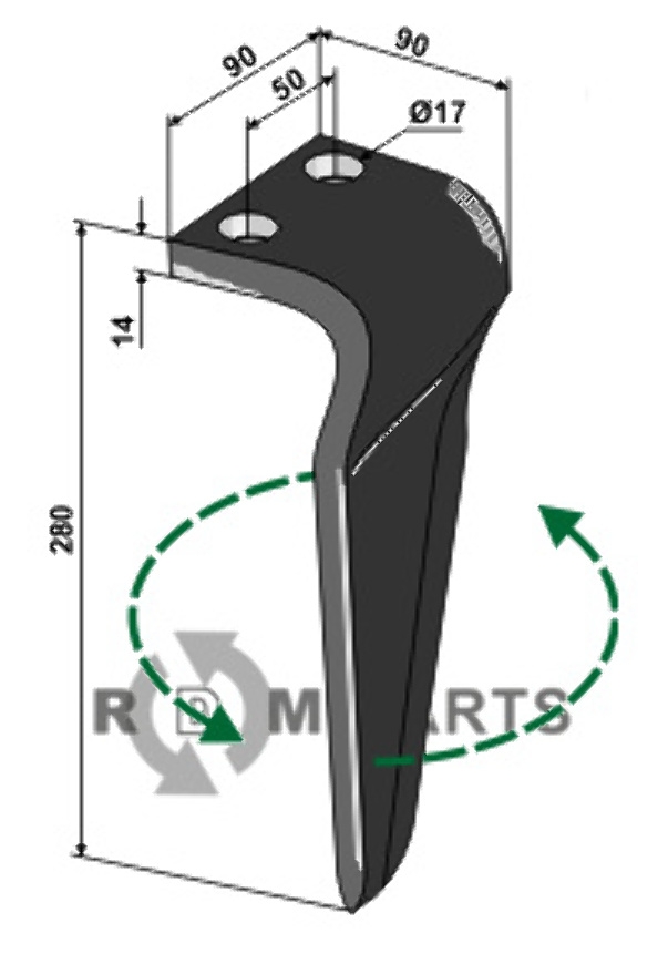 RDM Parts hat eine passende Alternative für 38100223 von maschio gaspardo in Form des 808-RH-MAS-51L Kreiseleggenzinken, linke Ausführung geeignet für Maschio / Gaspardo 38100223s.
