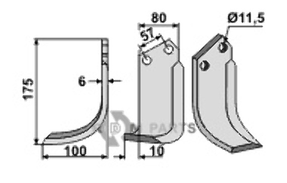 De Freesmes, linkse uitvoering passend voor Howard 9876 heeft een vergelijkbare lengte als ons passende origineel met nummer 808-HOW-22L. Het product is dus 175 millimeter lang en is daarom een goede passende vervanger het origineel. De breedte van de 808-HOW-22L is gelijk aan het origineel. Het onderdeel is even breed, namelijk 80 millimeter. De dikte van de Freesmes, linkse uitvoering passend voor Howard 9876 is belangrijk voor de manier waarop het onderdeel op de machine past. Het originele Freesmes, linkse uitvoering passend voor Howard 9876 van howard is 6 millimeter dik. Omdat dit gelijk is aan het onderdeel van RDM Parts, is de 808-HOW-22L passend voor het origineel. De gatafstand meet de afstand tussen de twee montagegaten op de Freesmes, linkse uitvoering passend voor Howard 9876. Met deze gaten kan het onderdeel aan de machine vast worden gemaakt. De afstand moet natuurlijk overeenkomen met de te vervangen onderdelen anders is het onderdeel niet passend voor de machine waar deze op moet. De gatafstand van deze Freesmes, linkse uitvoering passend voor Howard 9876 808-HOW-22L is 57 millimeter. De 808-HOW-22L en het origineel worden gemonteerd middels een montagegat van 11,5 milimeter. Met een bout wordt het onderdeel via het montagegat op de machine vastgemaakt. Het kan soms zijn dat een onderdeel door meerdere montagegaten wordt vastgemaakt aan de machine.