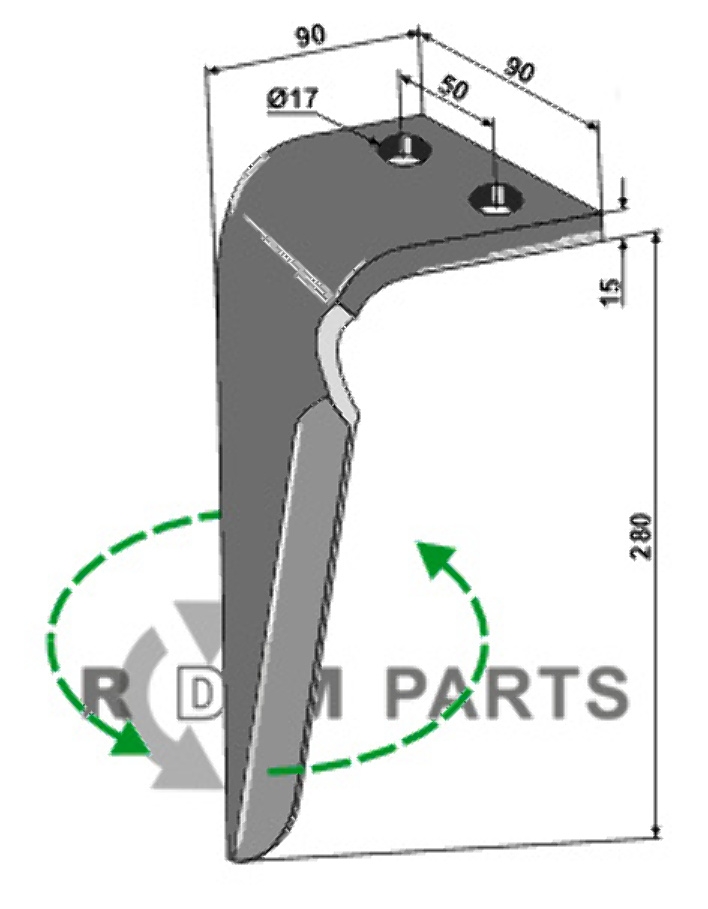 Voor uw machine heeft RDM Parts ook 808-RH-136-L Rotoregtanden, linkse uitvoering passend voor Sicma 052801 met een gelijke lengte als het originele onderdeel waar deze voor geschikt is. De lengte hiervan is 280 millimeter en is dus een goed en passend alternatief voor het origineel. De breedte van de 808-RH-136-L is gelijk aan het origineel. Het onderdeel is even breed, namelijk 90 millimeter. In algemene zin kan worden aangenomen dat hoe dikker een product is, hoe slijtvaster deze is. De Rotoregtanden, linkse uitvoering passend voor Sicma 052801 met onderdeelnummer 808-RH-136-L heeft een dikte van 15 millimeter. Daarmee past het onderdeel van RDM Parts met nummer 808-RH-136-L als alternatief op deze machine. De afstand tussen twee montagegaten wordt ook wel de gatafstand genoemd. Met deze montagegaten kan het onderdeel aan de machine van sicma vastgemaakt worden. De afstand moet natuurlijk overeenkomen met de te vervangen onderdelen anders is het onderdeel niet passend voor de machine waar deze op moet. De gatafstand van de 808-RH-136-L van RDM Parts bedraagt evenveel als het origineel en is 50 millimeter. De 808-RH-136-L en het origineel worden gemonteerd middels een montagegat van 17 milimeter. De montagegaten zorgen voor de verbinding tussen onderdeel en machine. Een aantal onderdelen heeft meerdere montagegaten om het vast te zetten.
